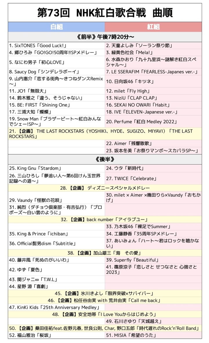 第73回NHK紅白歌合戦 のリハーサルは30日も行われました 取材に応じた出演者の方々の写真特集です こちらは司会の 櫻井翔 さん 写真特集 bitly3jBHKzu 紅白リハ 紅白歌合戦2022. Web 紅白歌合戦2022タイムテーブル曲目曲順出演者一覧ウタやtwicebefirstら登場.