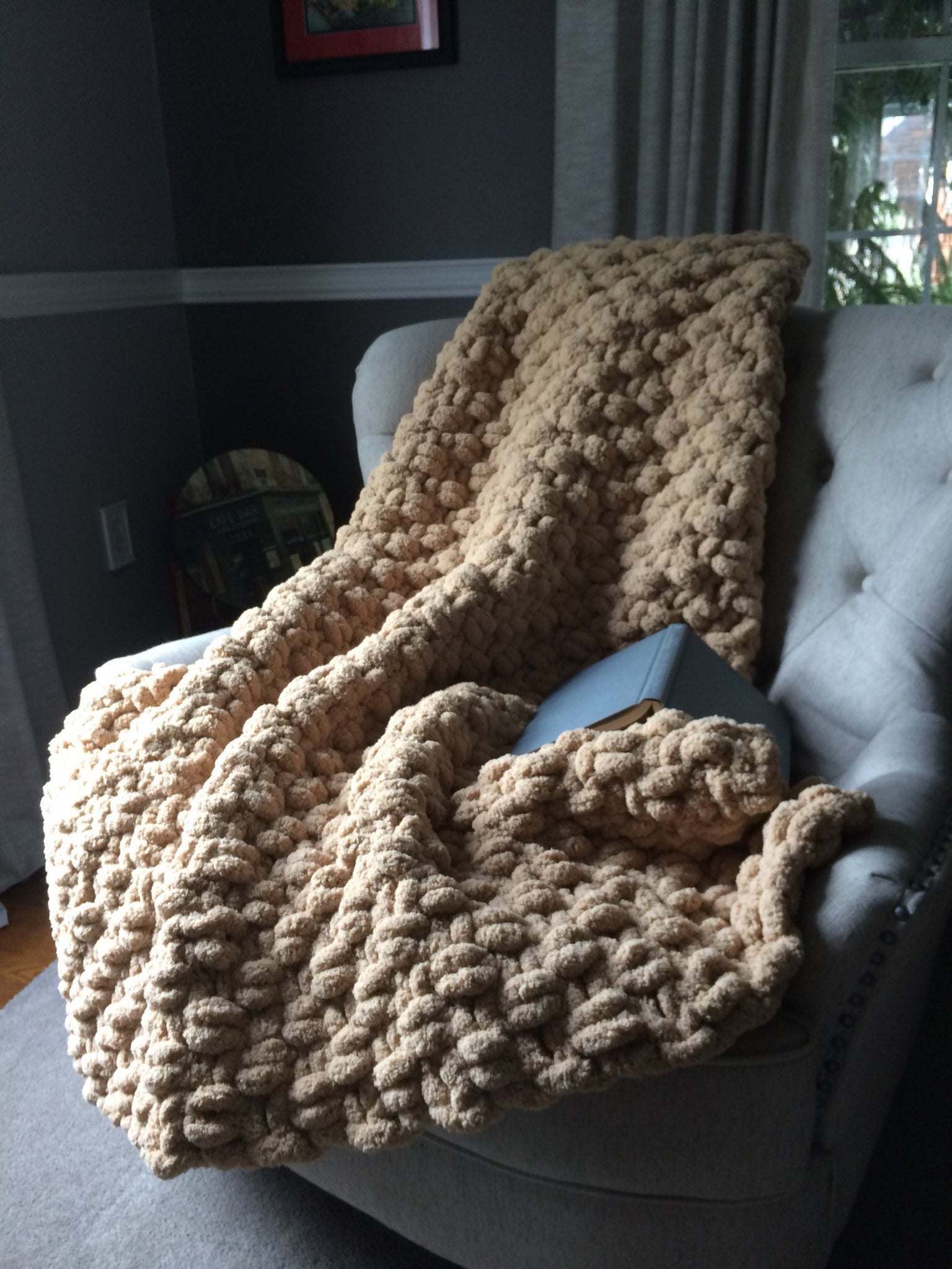How To Make A Chunky Knitted Blanket Knitting Blankets With Arms Or Needles Knitted Blankets Chunky Knit Blanket Diy Blanket Knitting Patterns